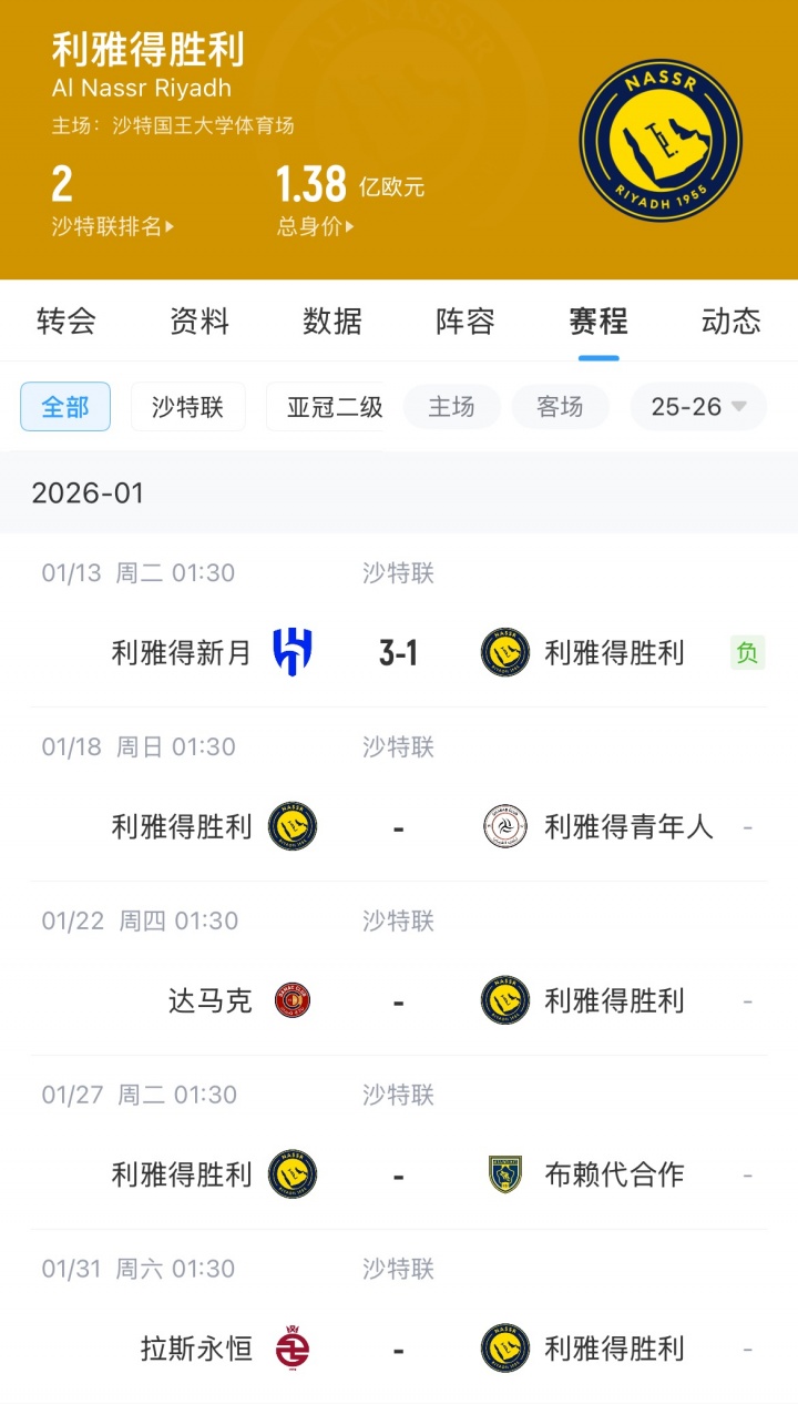 C罗本赛季各赛事18场16球3助,但利雅得胜利近4轮联赛3负1平,直接从领头羊的位置掉到距离榜首7分。